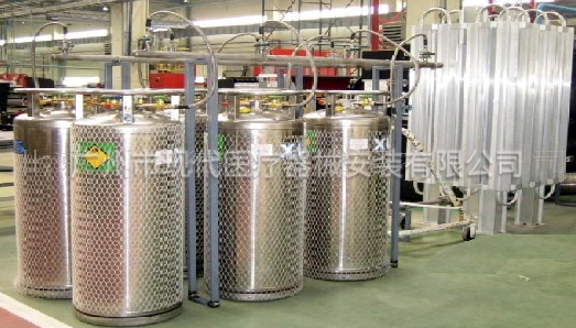 系统由液氧杜瓦罐、汽化器、减压装置、阀门、仪表、管道等组成。投资小,操作方便,经济。每瓶175L的液氧杜瓦罐可汽化相当于出约25瓶氧气钢瓶释放的氧气,可释放出约120立方气体氧气。